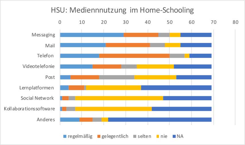 Die Belastung für die Familien der HSU-Lehrkräfte stieg zudem deutlich an: Für 12 % der Befragten stellte die Vereinbarung von Lehrtätigkeit und Kindererziehung schon im Präsenzunterricht eine Herausforderung dar, im Lock-Down waren es 20 %.