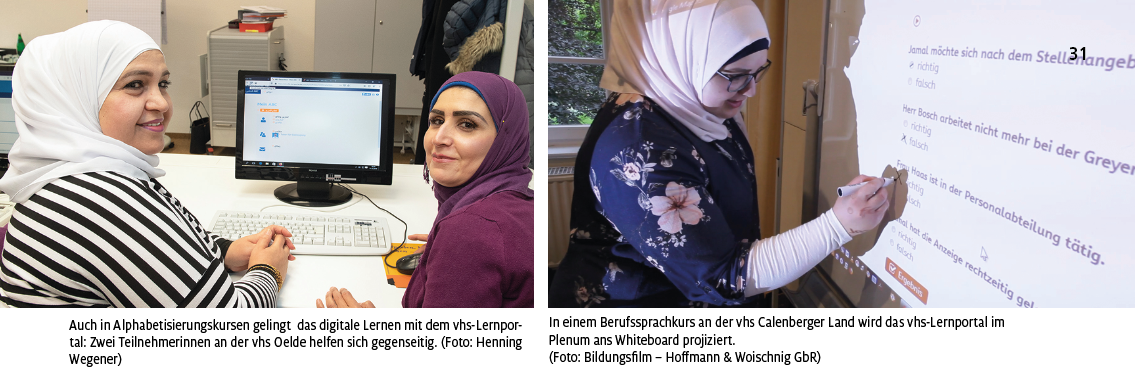 Als im Frühjahr 2020 mit Beginn der Corona-Pandemie alle Bildungseinrichtungen schließen mussten, setzen zahlreiche Lehrkräfte auf das vhs-Lernportal, die kostenfreie Online-Plattform des Deutschen Volkshochschul-Verbandes, um ihre Deutschkurse online fortzuführen. Was als Notlösung begann, sorgte bei vielen für so große Begeisterung, dass sie auch im Präsenzunterricht nicht mehr auf digitale Elemente verzichten möchten.