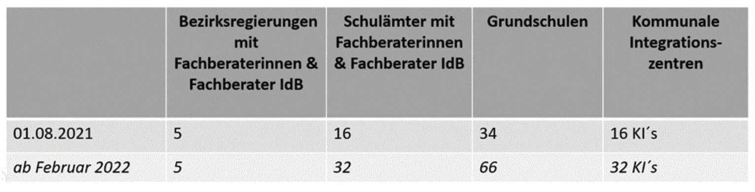 Auf regionaler Ebene finden für die teilnehmenden Schulen eine schulfachliche Begleitung und ein Austausch mit der Fachberatung „Integration durch Bildung“ des jeweiligen zuständigen Schulamtes statt.