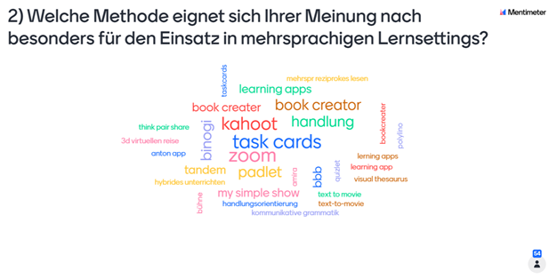 Die insgesamt 24 Workshops thematisierten ein breites Spektrum an verschiedenen Sprachlernmethoden und Materialien von der Primarstufe bis zur Erwachsenenbildung. So wurden beispielsweise interaktive und spielerische Ansätze für den Unterricht in DaZ/DaF vorgestellt, strukturierte Methoden zum Schreiben von Texten getestet und Konzepte zur didaktischen Gestaltung von Sprachunterricht unter Berücksichtigung heterogener Lernziele diskutiert. Damit verbunden wird die Einbeziehung von Mehrsprachigkeit zunehmend als unverzichtbarer Teil einer umfassenden Sprachbildung für alle Zielgruppen wahrgenommen. Nicht zuletzt wurde in vielen Workshops auch der Einsatz digitaler Tools für die Sprachförderung erprobt.